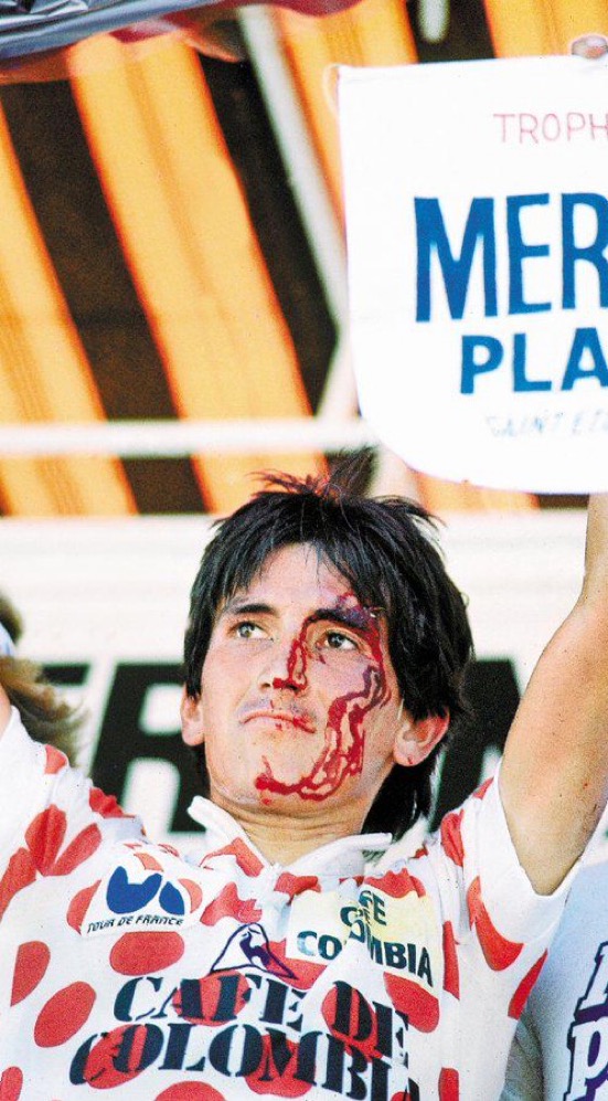 1985 Luchito Herrera el Jardinerito de Fusagasuga se escapa en la etapa 14 del Tour de Francia, peleando el triunfo con Hinault… se cae y llega ensangrentado a la meta, gana la etapa y se convierte en leyenda del ciclismo, el Rey de la Montaña